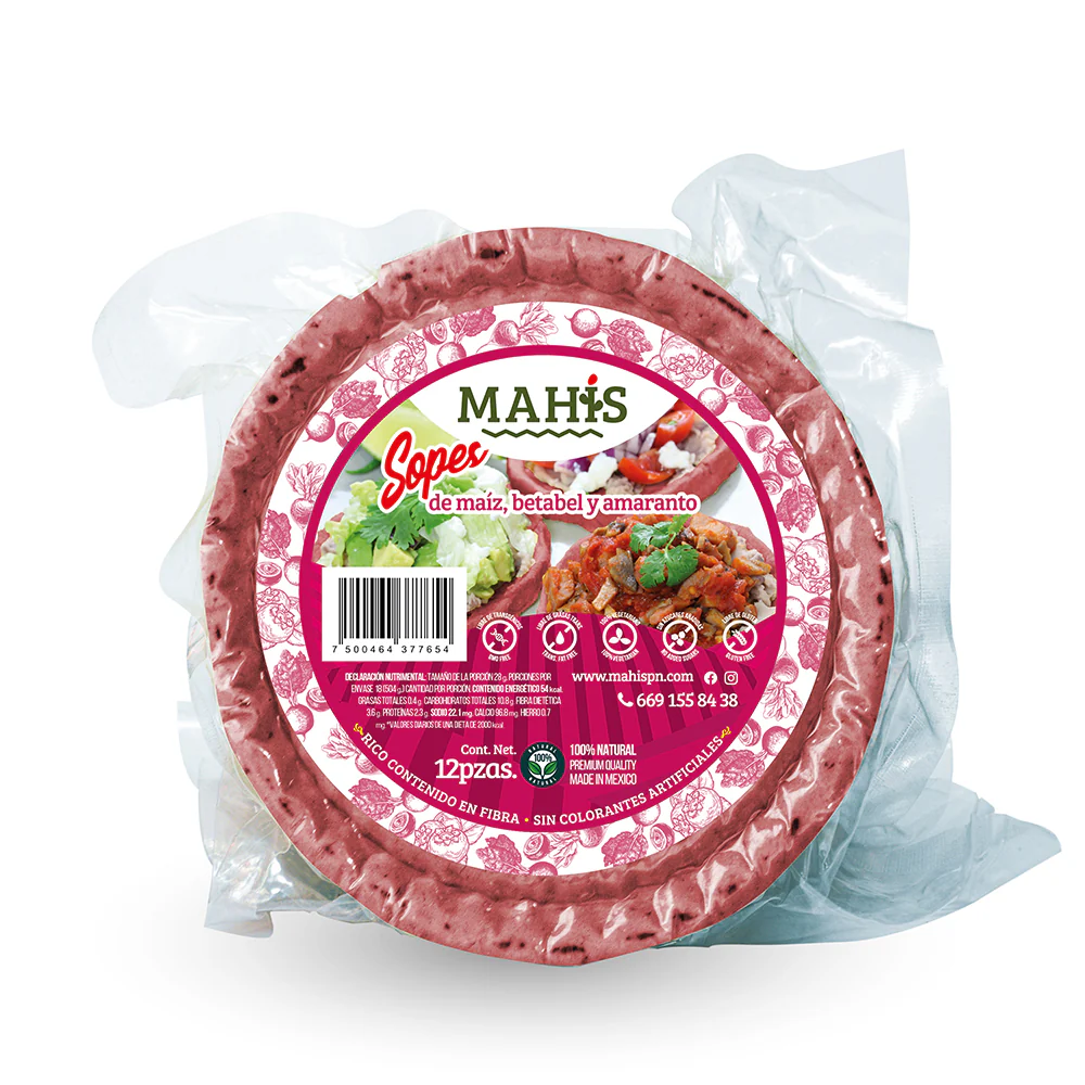 Una base tradicional con un toque saludable. Nuestros sopes están elaborados con mezclas naturales como maíz azul, chía, betabel y espinaca.